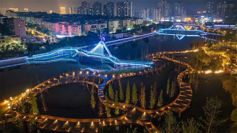 據了解,該項目坐落于四川省廣安市中心城區,總規劃面積162公頃,全長(cháng)8.1公里。工程內容涵蓋濱河環(huán)境整治、沿岸園林景觀(guān)建設、健康綠道鋪設、城市驛站新建及改造、休閑設施配套、橋梁新建及改造以及夜景亮化等多個(gè)方面。經(jīng)過(guò)中冶華天專(zhuān)業(yè)設計人員的精心謀劃,項目亮點(diǎn)不勝枚舉:創(chuàng )新打造的藝術(shù)家村落,將成為廣安新的藝術(shù)展覽、手作工坊和非遺文化傳播的集散地,為城市注入新的文化活力;兩座流光溢彩的人行橋橫跨西溪河,極大地方便了周邊市民的出行,還成了當地的標志性建筑;在廣安地標商圈摩爾春天附近的河岸,通過(guò)增加綠植覆蓋、建設城市綠道和街心花園等措施,有效緩解了城市熱島效應,為市民提供了更加宜居的生活環(huán)境;濱河臺和愛(ài)心驛站等配套設施的完善,將為游客提供更加便捷、舒適的服務(wù)體驗;從中橋到西溪峽大橋的峽谷公園段,充分利用地勢落差,精心打造了長(cháng)影瀑、親水峽谷、望江憶故等自然景觀(guān),充分展現了西溪河的自然生態(tài)環(huán)境和文化魅力。項目建成后,助力當地完善基礎設施、優(yōu)化人居環(huán)境、提升城市功能品質(zhì),提高市民的生活獲得感、幸福感。