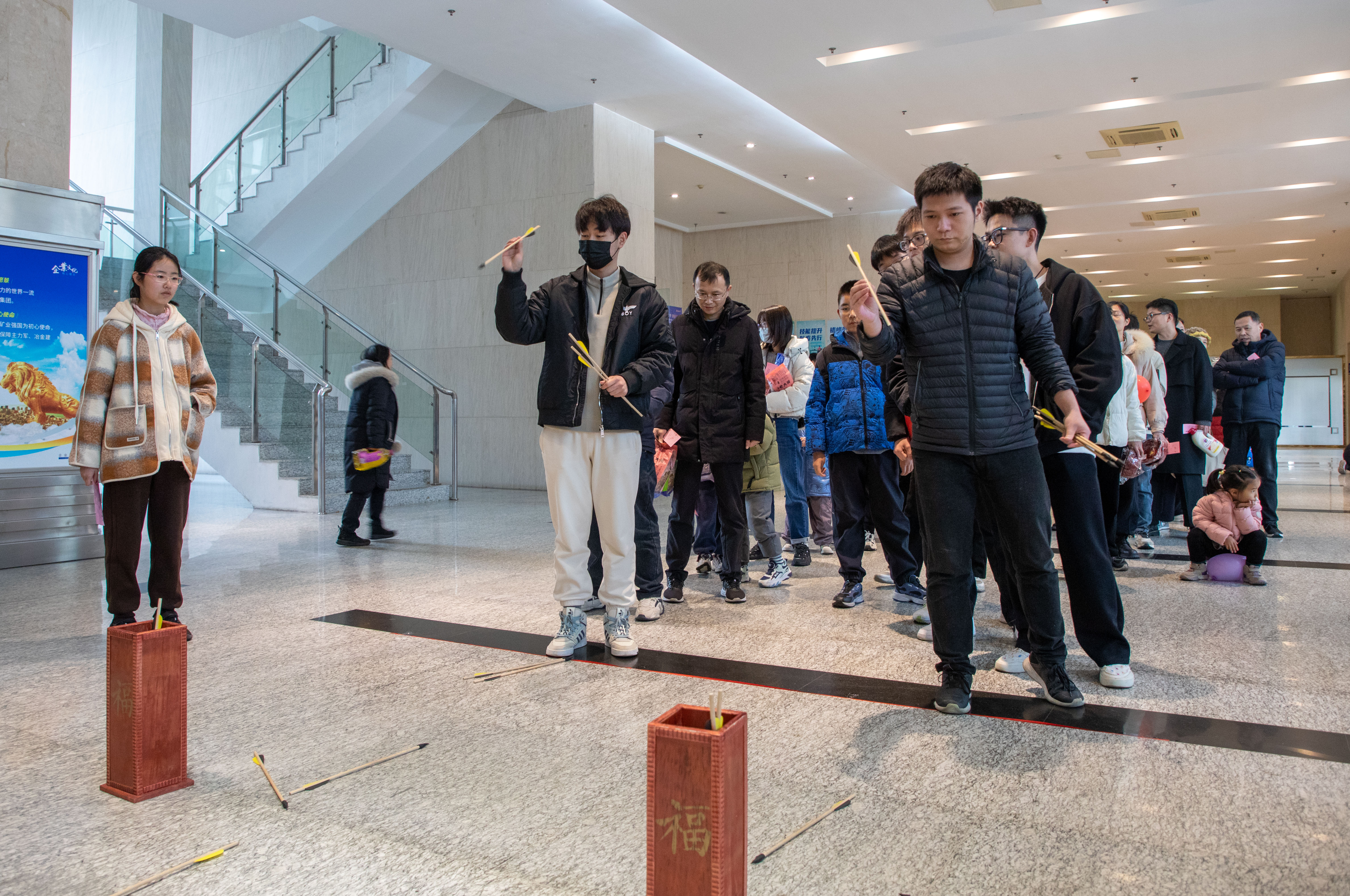 致辭完畢后,迎春活動(dòng)正式開(kāi)啟。此次文體活動(dòng)分設南京與馬鞍山兩個(gè)會(huì )場(chǎng),共設置了14個(gè)游戲:投壺、套圈,精準中靶,老少咸宜;乒乓傳球、貪吃蛇、旱地龍舟,團隊合作,趣味十足;丟沙包、跳格子,重溫兒時(shí)歡樂(lè )時(shí)光;撲克24點(diǎn),益智益腦,樂(lè )在其中。參與者在游玩任意三個(gè)游戲后,可領(lǐng)取蛇年福字對聯(lián),收獲“?!睔?,滿(mǎn)堂喜悅祥和中,大人孩子齊上陣,樂(lè )享一年一度的美好時(shí)光。
