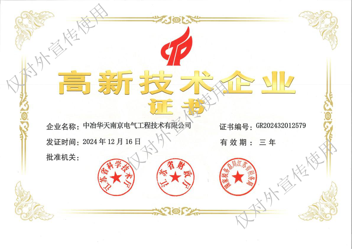 中冶華天電氣公司延續高新技術(shù)企業(yè)資質(zhì)